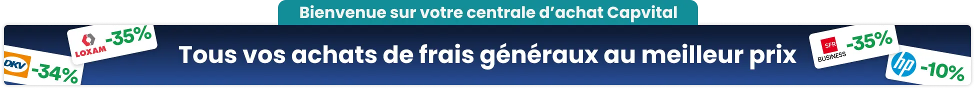 La centrale d'achat Capvital vous donne accès à des tarifs déjà négociés auprès de plus de 100 fournisseurs nationaux : photocopieurs, fournitures de bureau, téléphonie, informatique, extincteurs, contrôles réglementaires, véhicules, finance, RH...